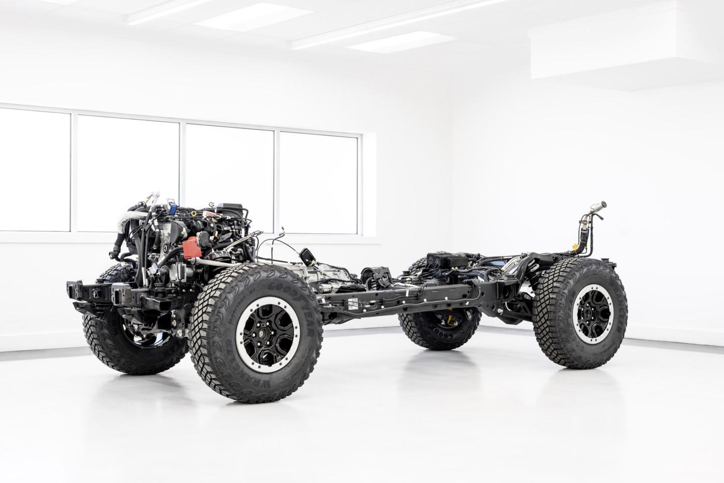 פורד ברונקו הוא אחד מהגיבורים האחרונים עם שלדת סולם ו-body on frame, כיאה לרכב שטח אמיתי. בפורד בחרו ללכת על הנוסחה של הלנד קרוזר: סרן חי מאחורה ומתלים עצמאיים מלפנים (בניגוד למתחרה שלו מג׳יפ בעלי שני הסרנים החיים), מתוך הבנה שגם רכבי שטח מבלים הרבה יותר זמן על האספלט מאשר על סלעים.